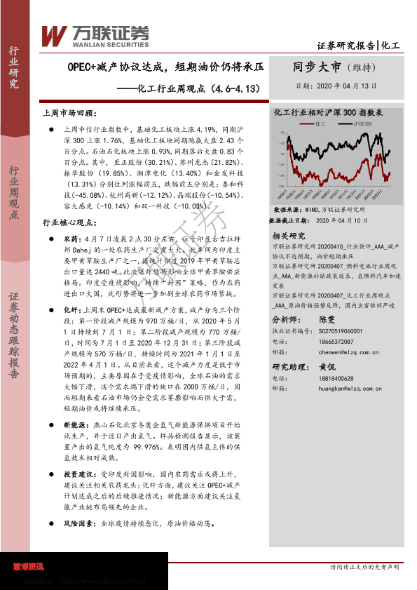 【万联证券】【20200413】20200413-万联证券-化工行业周观点:OPEC+减产协议达成,短期油价仍将承压-17页