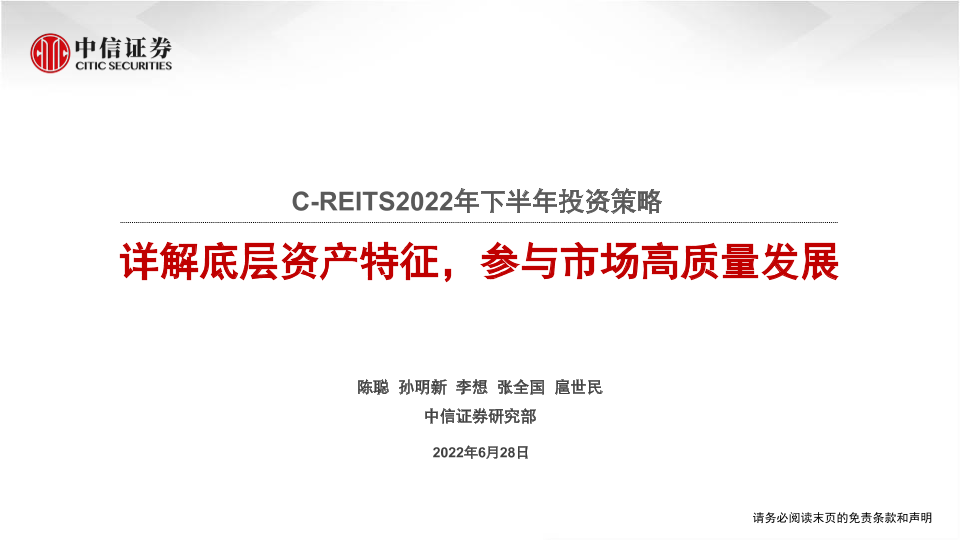 【中信证券】【20220628】C-REITS2022年下半年投资策略:详解底层资产特征,参与市场高质量发展-70页
