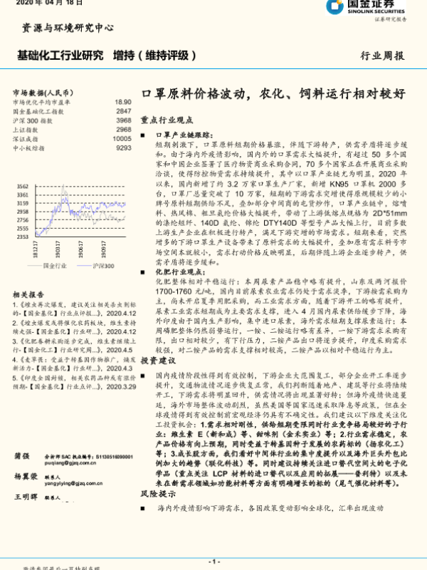 【国金证券】【20200418】20200418-国金证券-基础化工行业周报:口罩原料价格波动,农化、饲料运行相对较好-15页