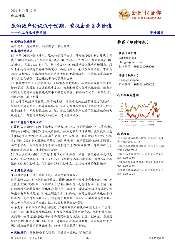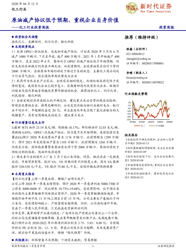 【新时代证券】【20200412】20200412-新时代证券-化工行业投资周报:原油减产协议低于预期,重视企业自身价值-18页