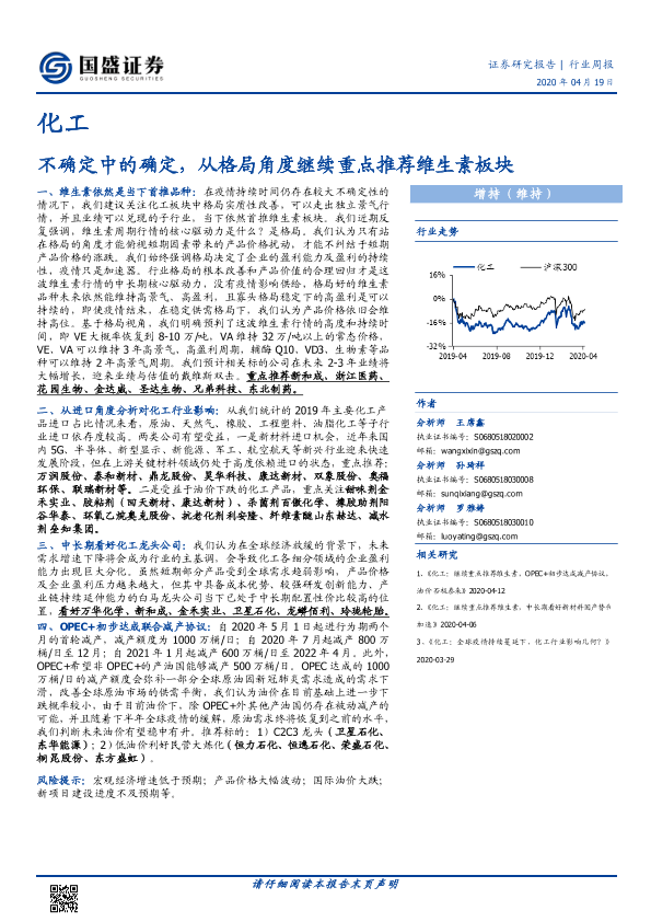 【国盛证券】【20200419】20200419-国盛证券-化工行业周报:不确定中的确定,从格局角度继续重点推荐维生素板块-12页