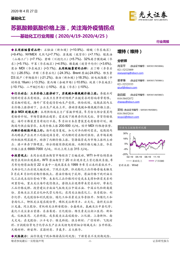 【光大证券】【20200427】基础化工行业周报:苏氨酸赖氨酸价格上涨,关注海外疫情拐点-19页