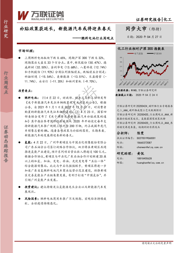【万联证券】【20200427】燃料电池行业周观点:补贴政策获延长,新能源汽车或将迎来春天-7页