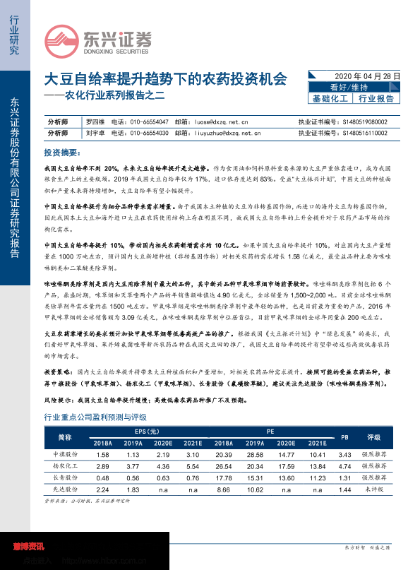 【东兴证券】【20200428】农化行业系列报告之二:大豆自给率提升趋势下的农药投资机会-14页
