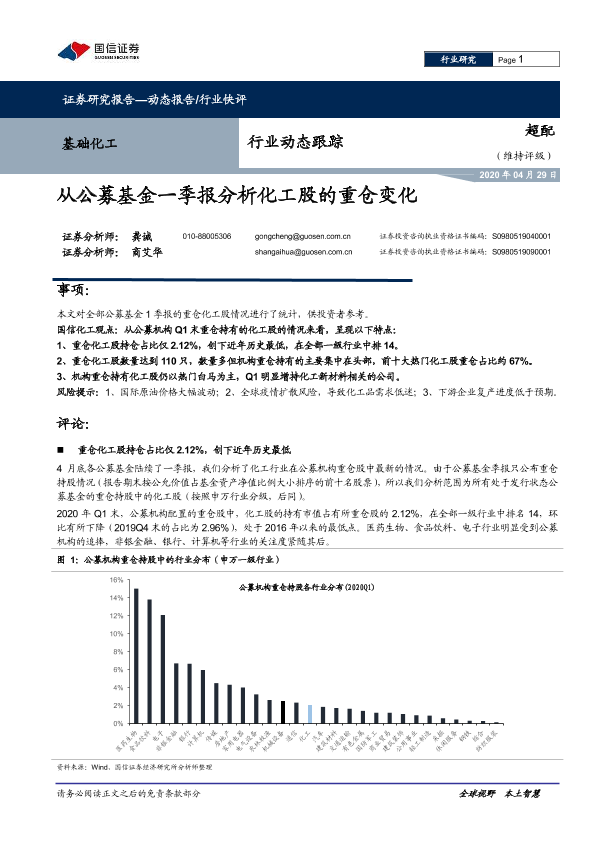 【国信证券】【20200429】从公募基金一季报分析化工股的重仓变化-7页