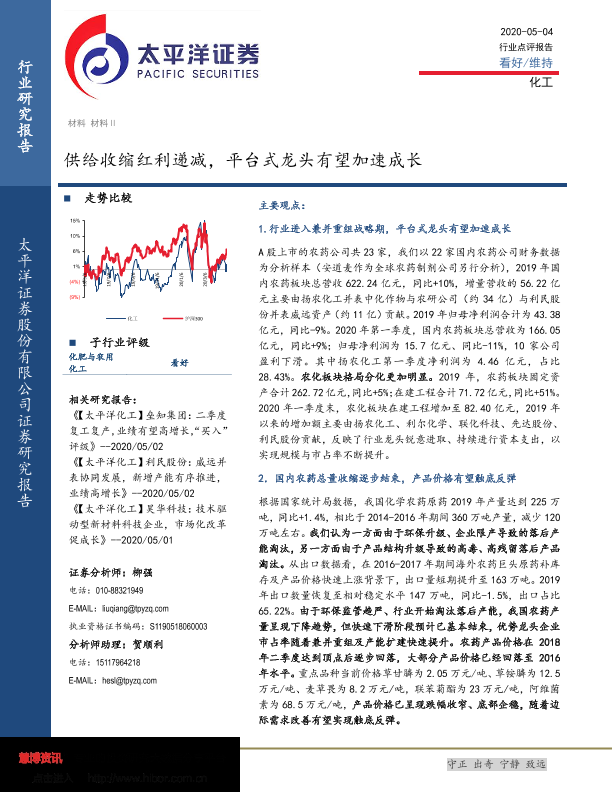 供给收缩 农产品价格 农化需求 农药行业 平台式龙头