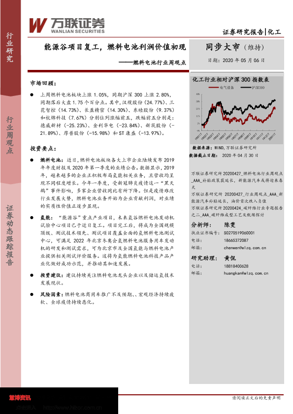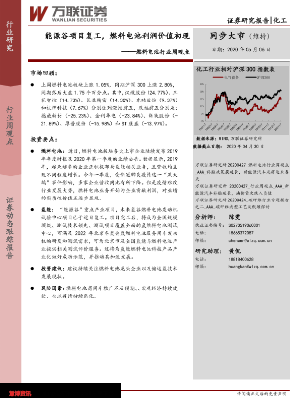 【万联证券】【20200506】20200506-万联证券-燃料电池行业周观点:能源谷项目复工,燃料电池利润价值初现-7页