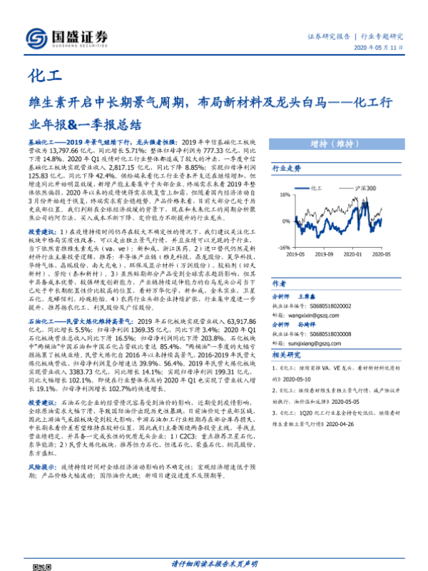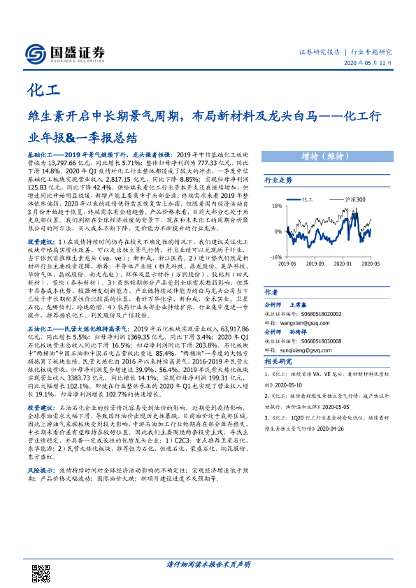 【国盛证券】【20200511】20200511-国盛证券-化工行业年报&一季报总结:维生素开启中长期景气周期,布局新材料及龙头白马-31页