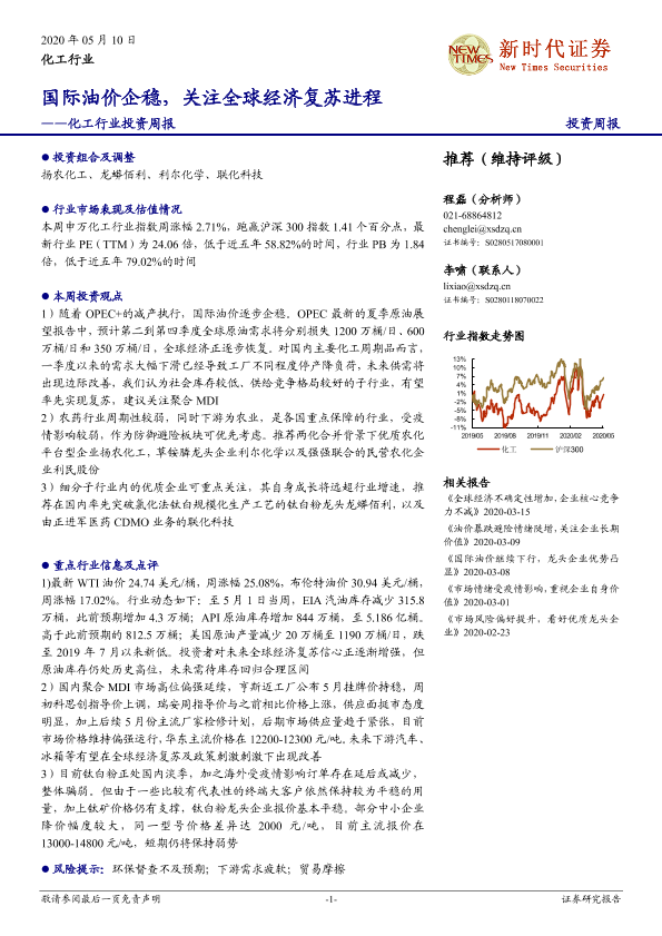 【新时代证券】【20200510】20200510-新时代证券-化工行业投资周报:国际油价企稳,关注全球经济复苏进程-17页
