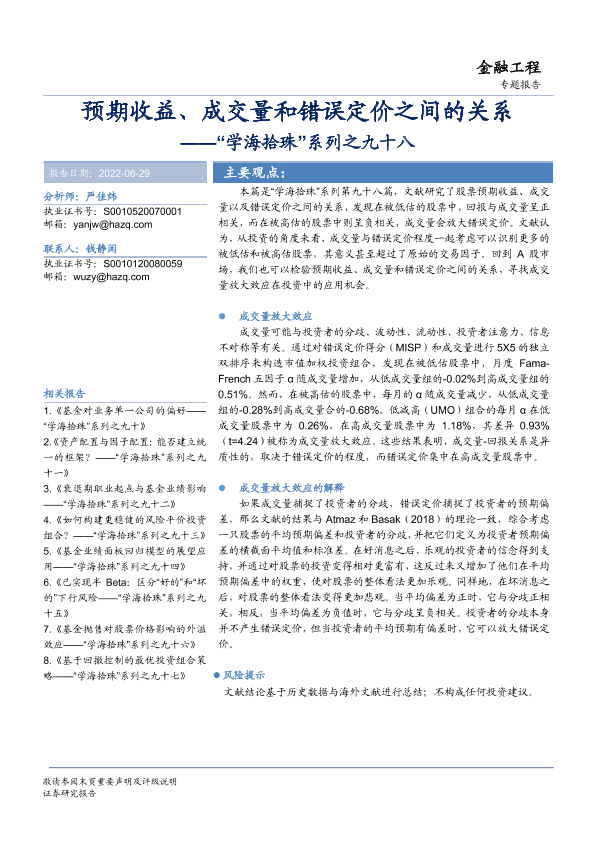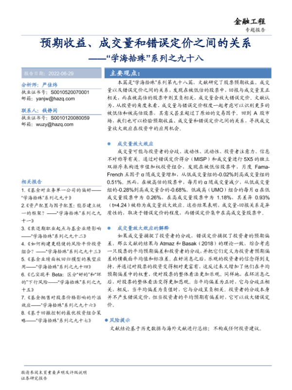 【华安证券】【20220629】预期收益、成交量和错误定价之间的关系-20页