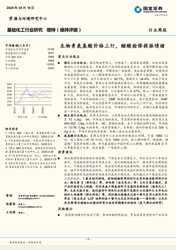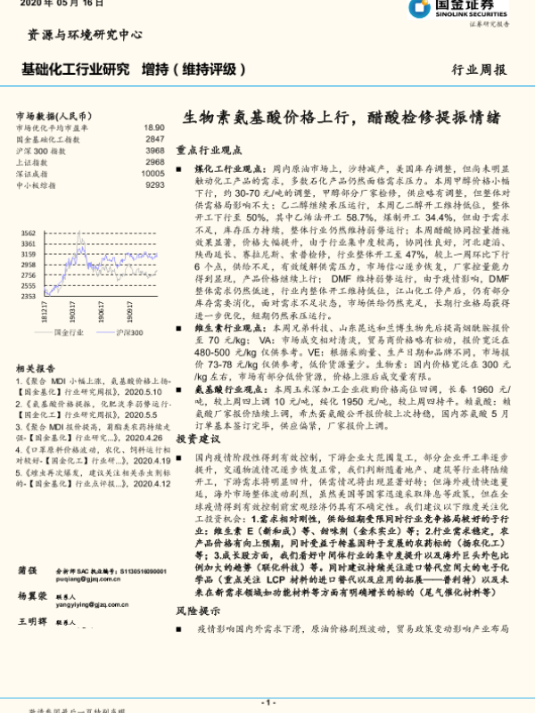 【国金证券】【20200516】20200516-国金证券-基础化工行业研究周报:生物素氨基酸价格上行,醋酸检修提振情绪-15页