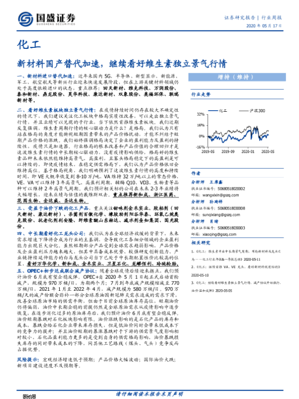 【国盛证券】【20200517】20200517-国盛证券-化工行业周报:新材料国产替代加速,继续看好维生素独立景气行情-9页