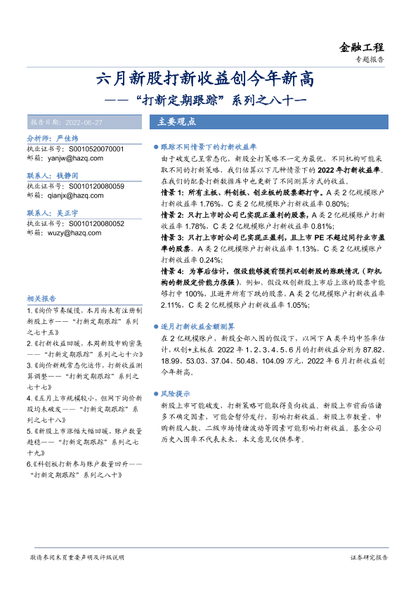 【华安证券】【20220627】“打新定期跟踪”系列之八十一:六月新股打新收益创今年新高-20页