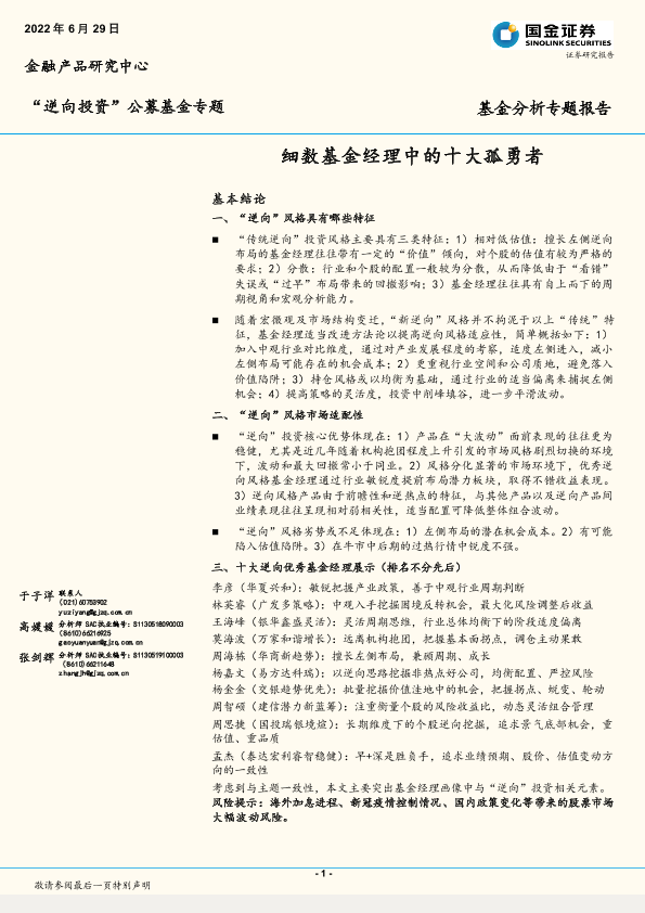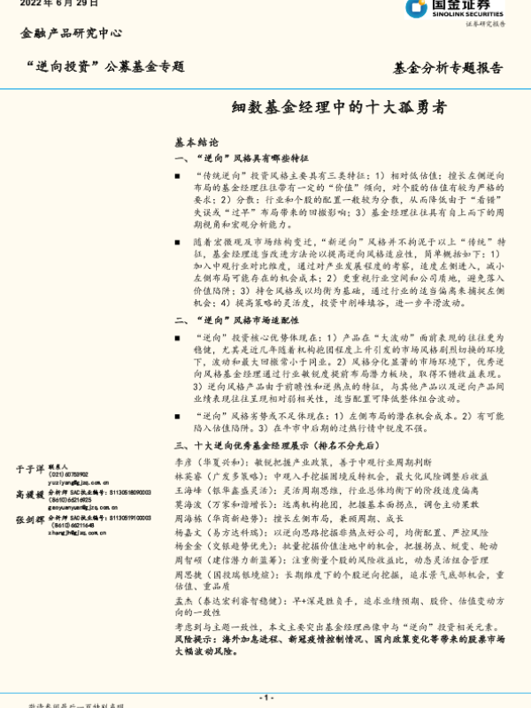 【国金证券】【20220629】“逆向投资”公募基金专题:细数基金经理中的十大孤勇者-27页