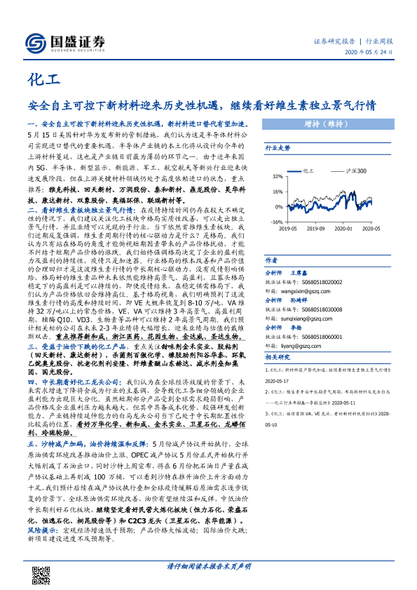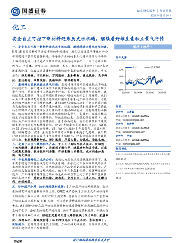 【国盛证券】【20200524】20200524-国盛证券-化工行业周报:安全自主可控下新材料迎来历史性机遇,继续看好维生素独立景气行情-9页