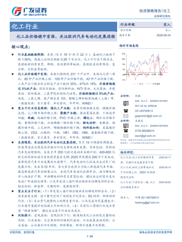 【广发证券】【20200524】化工品价格稳中有涨,关注欧洲汽车电动化发展进程-24页