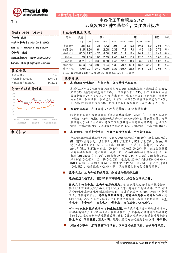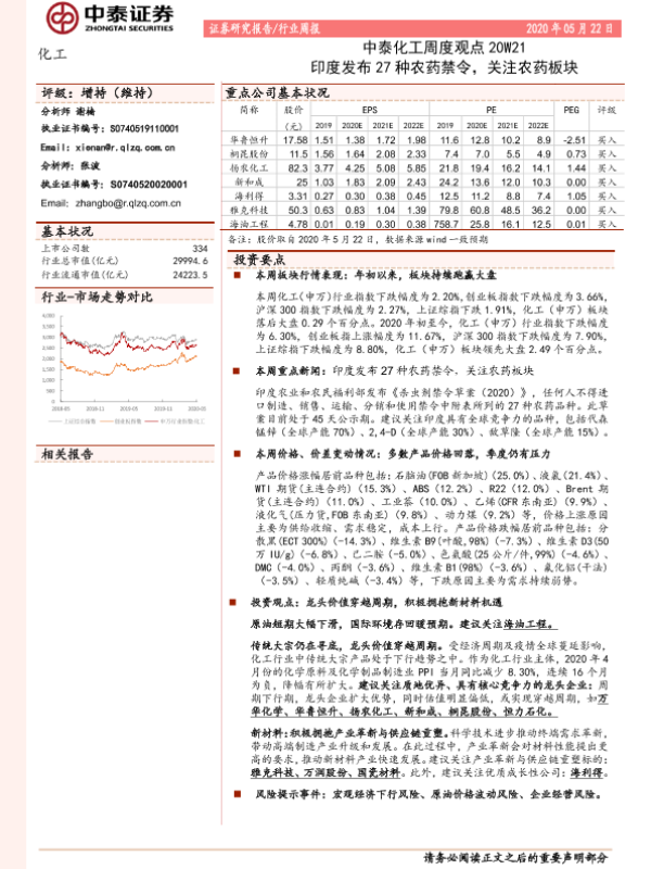 【中泰证券】【20200522】中泰化工周度观点20W21:印度发布27种农药禁令,关注农药板块-25页