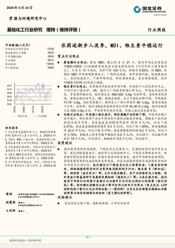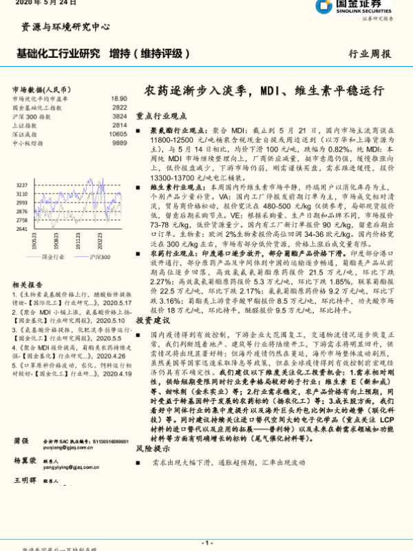 【国金证券】【20200524】20200524-国金证券-基础化工行业研究:农药逐渐步入淡季,MDI、维生素平稳运行-13页