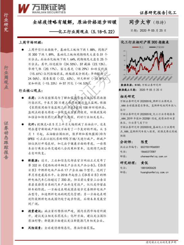 【万联证券】【20200525】全球疫情略有缓解,原油价格逐步回暖同步大市-16页