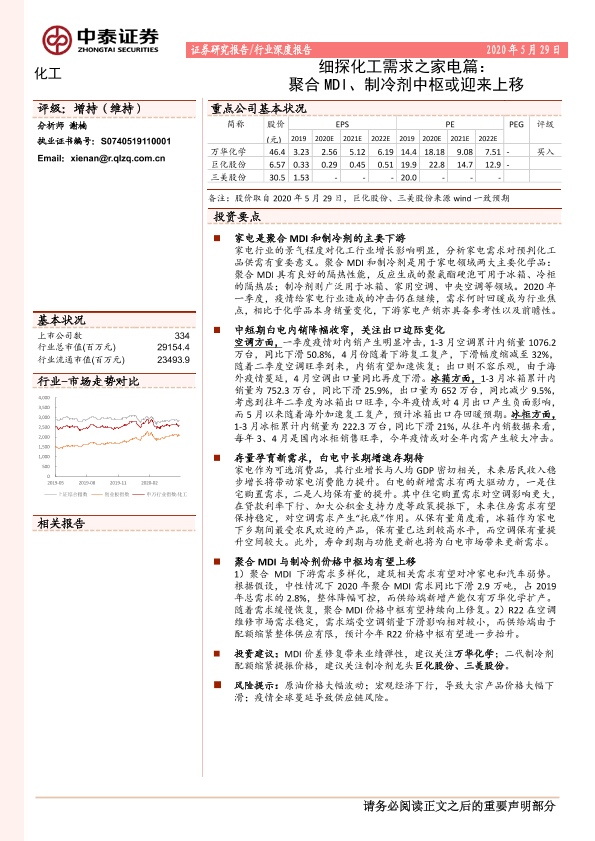 【中泰证券】【20200529】细探化工需求之家电篇:聚合MDI、制冷剂中枢或迎来上移-23页