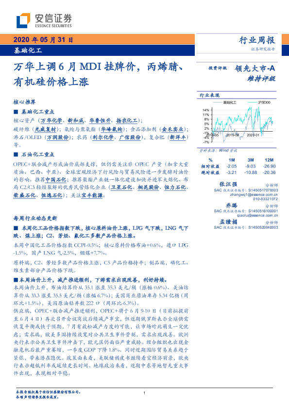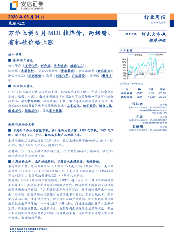 【安信证券】【20200531】基础化工行业周报:万华上调6月MDI挂牌价,丙烯腈、有机硅价格上涨-5页