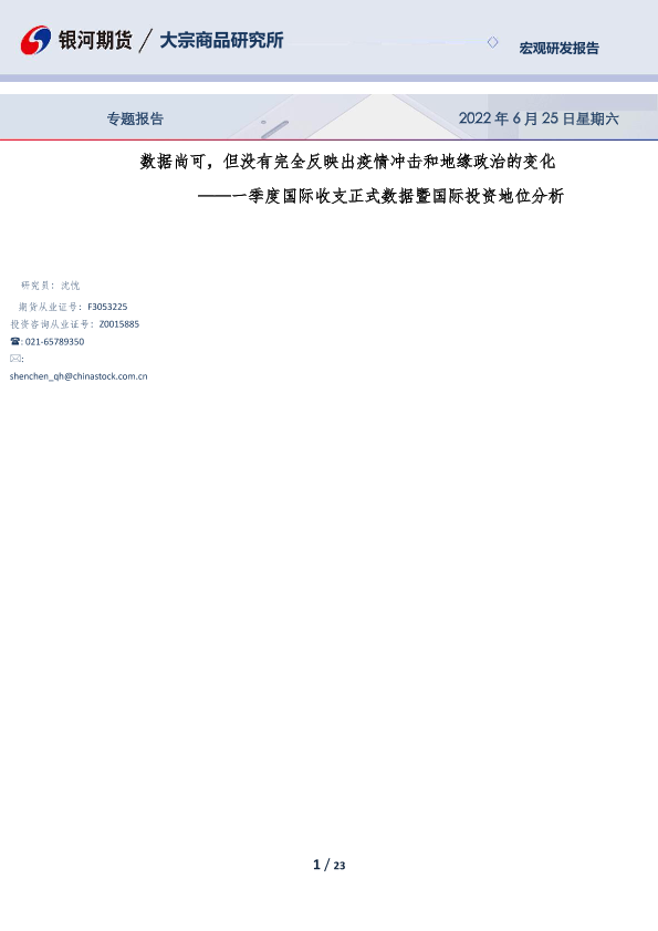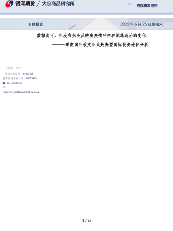 【银河期货】【20220625】一季度国际收支正式数据暨国际投资地位分析-23页