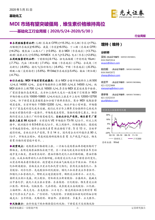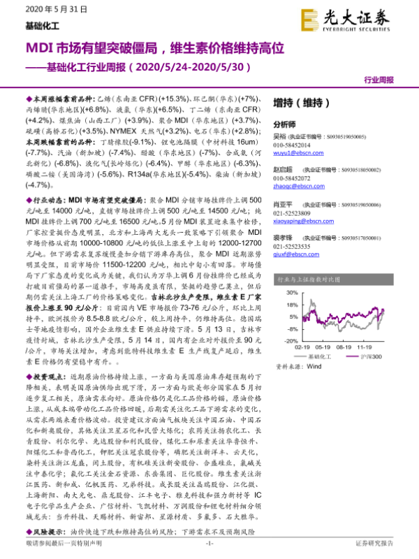 【光大证券】【20200531】20200531-光大证券-基础化工行业周报:MDI市场有望突破僵局,维生素价格维持高位-19页