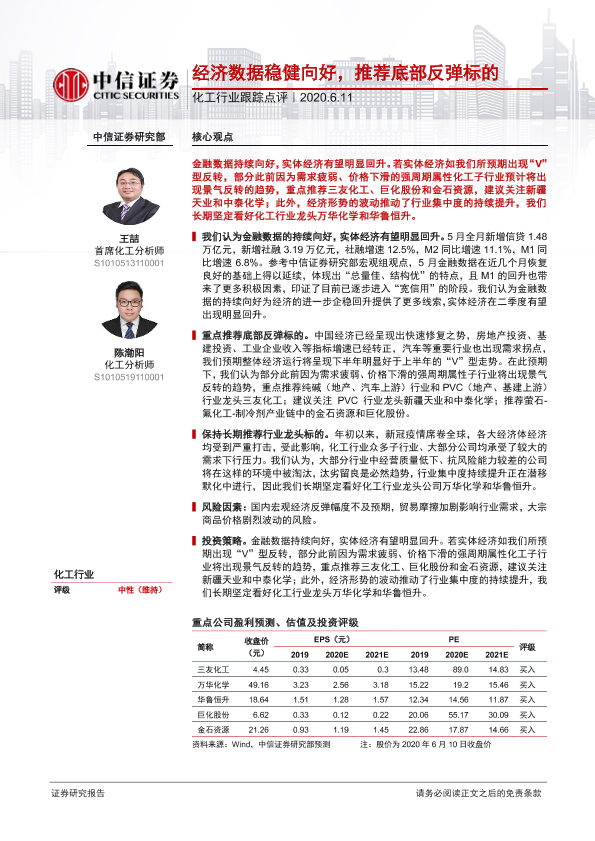 【中信证券】【20200611】化工行业跟踪点评:经济数据稳健向好,推荐底部反弹标的-2页