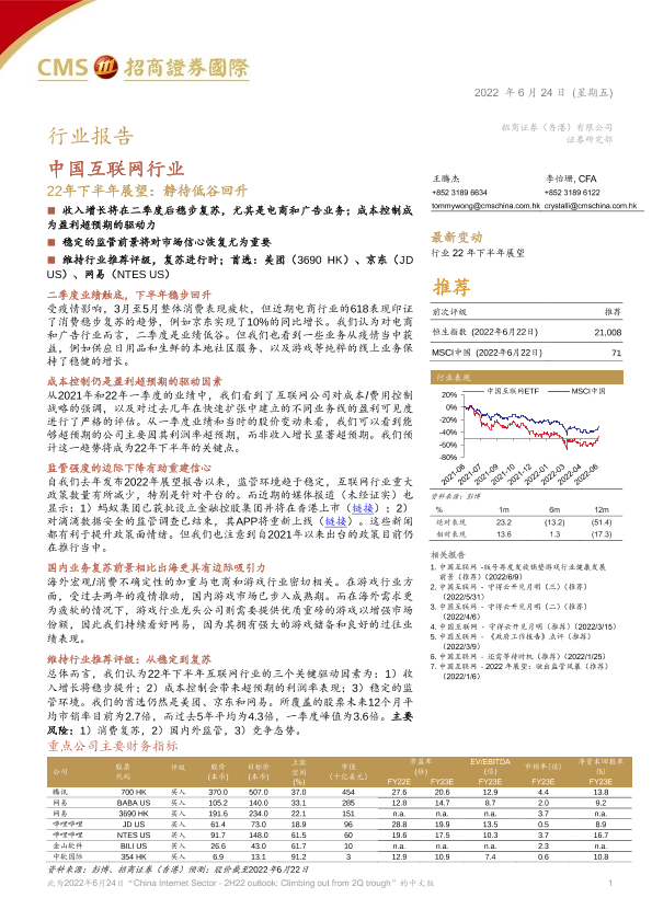 【招商证券国际】【20220624】中国互联网行业:22年下半年展望,静待低谷回升-29页