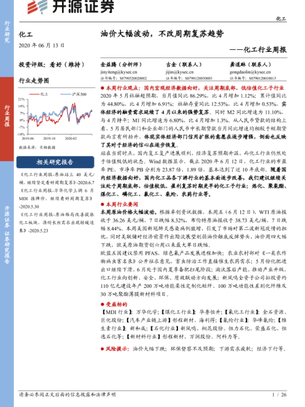 【开源证券】【20200613】20200613-开源证券-化工行业周报:油价大幅波动,不改周期复苏趋势-26页