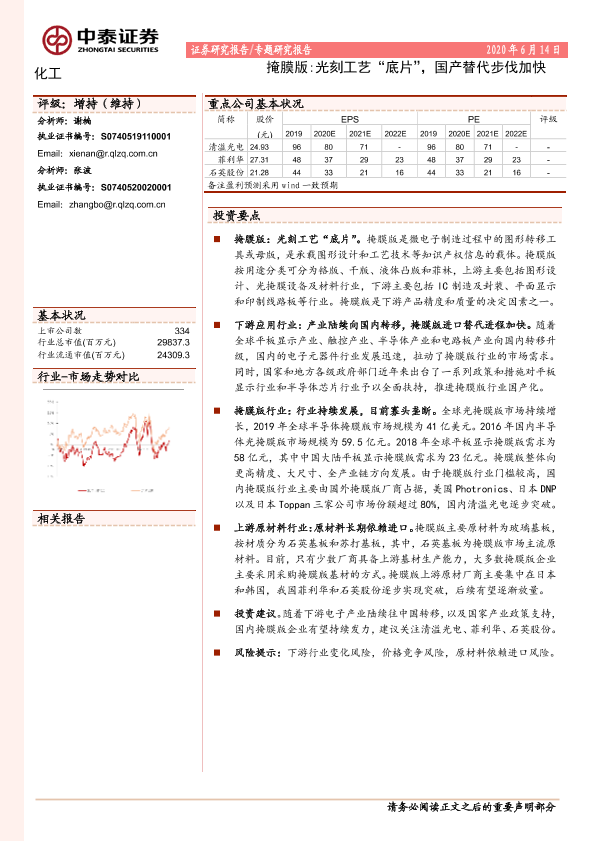 【中泰证券】【20200614】化工专题研究报告:掩膜版:光刻工艺“底片”,国产替代步伐加快-27页