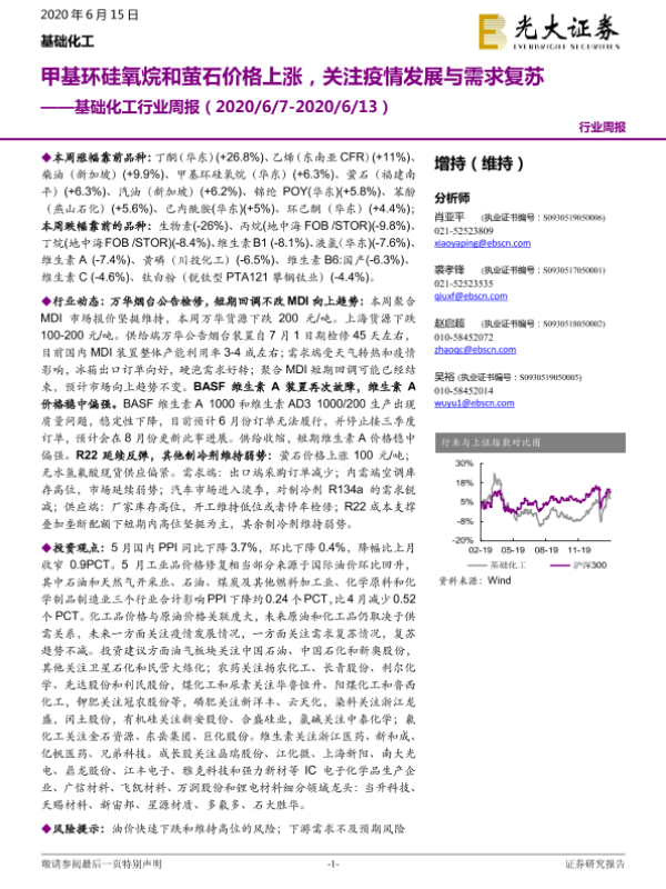 【光大证券】【20200615】基础化工行业周报:甲基环硅氧烷和萤石价格上涨,关注疫情发展与需求复苏-19页