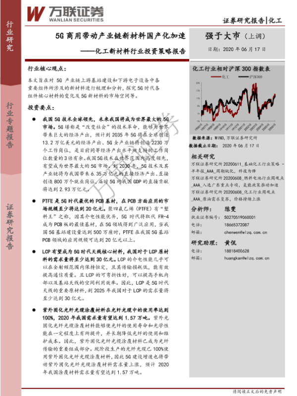 【万联证券】【20200617】20200617-万联证券-化工新材料行业投资策略报告:5G商用带动产业链新材料国产化加速-27页