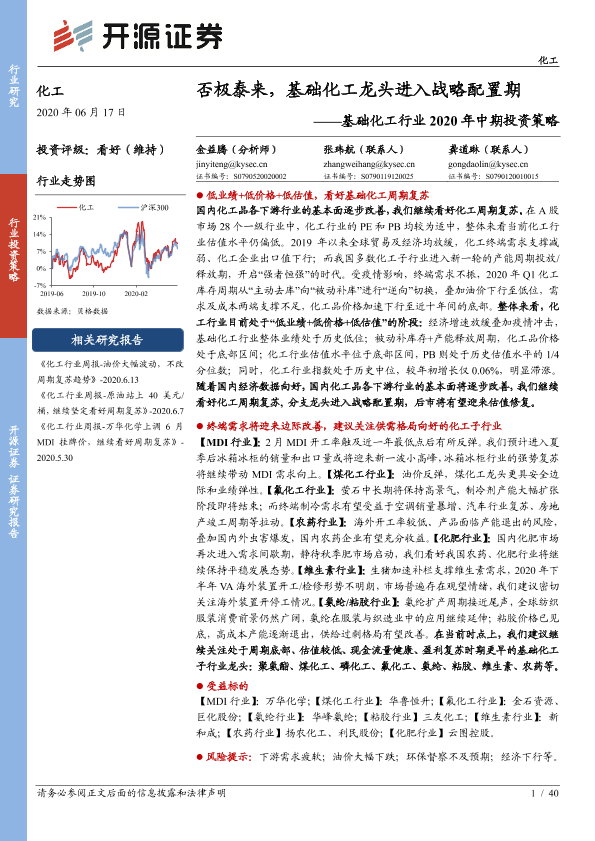 【开源证券】【20200617】基础化工行业2020年中期投资策略:否极泰来,基础化工龙头进入战略配置期-40页