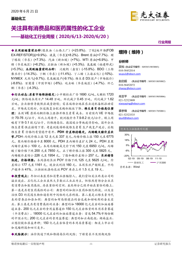 【光大证券】【20200621】基础化工行业周报:关注具有消费品和医药属性的化工企业-24页