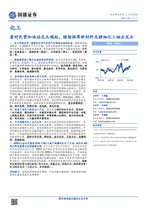 【国盛证券】【20200621】20200621-国盛证券-化工行业周报:看好民营加油站龙头崛起,继续推荐新材料及精细化工细分龙头-9页