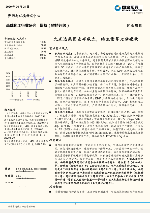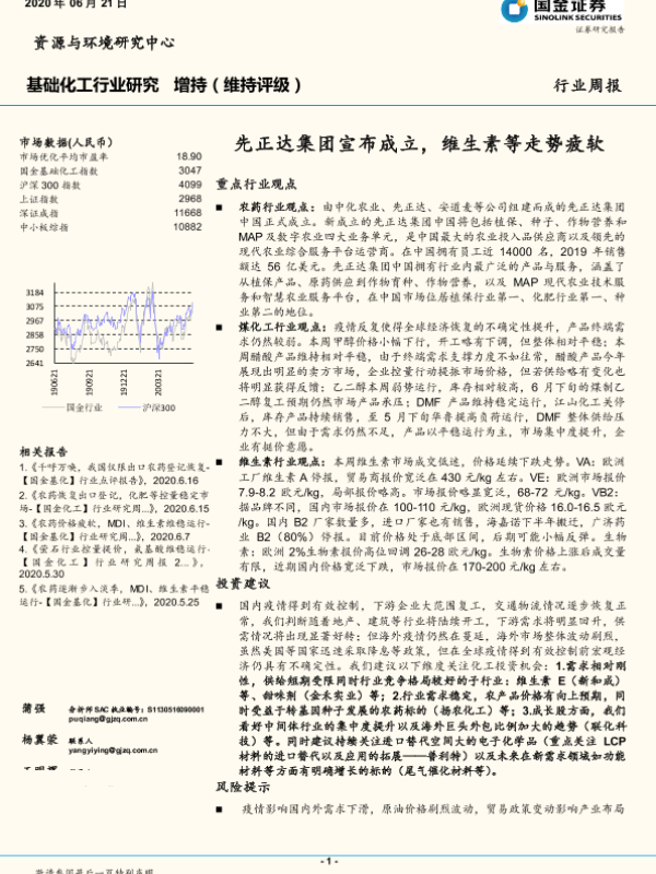 【国金证券】【20200621】20200621-国金证券-基础化工行业研究:先正达集团宣布成立,维生素等走势疲软-16页