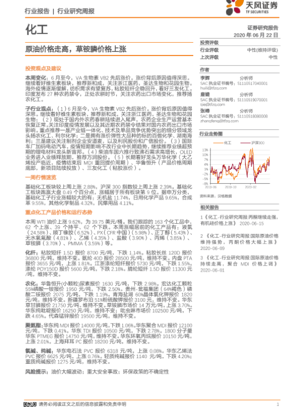 【天风证券】【20200622】20200622-天风证券-化工行业研究周报:原油价格走高,草铵膦价格上涨-16页
