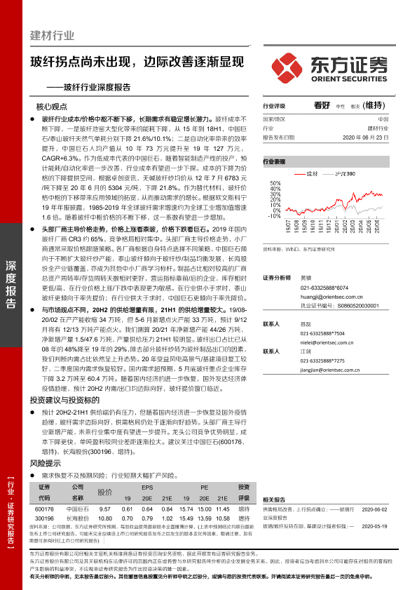 【东方证券】【20200623】20200623-东方证券-玻纤行业深度报告:玻纤拐点尚未出现,边际改善逐渐显现-19页