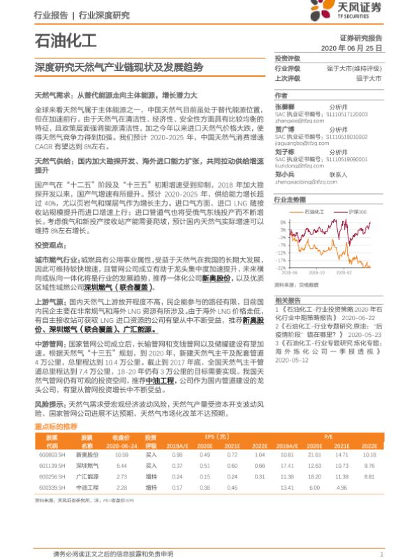 【天风证券】【20200625】石油化工行业深度研究:深度研究天然气产业链现状及发展趋势-47页
