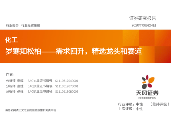 【天风证券】【20200624】20200624-天风证券-化工行业投资策略:岁寒知松柏——需求回升,精选龙头和赛道-47页