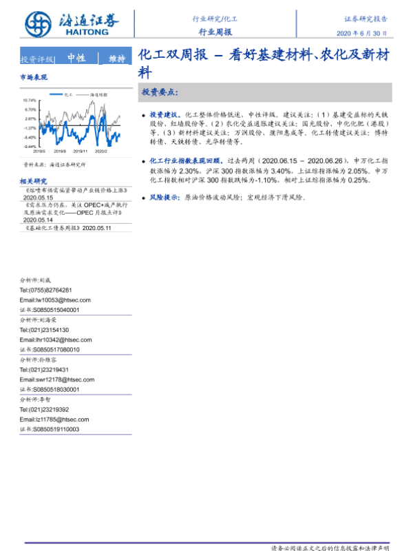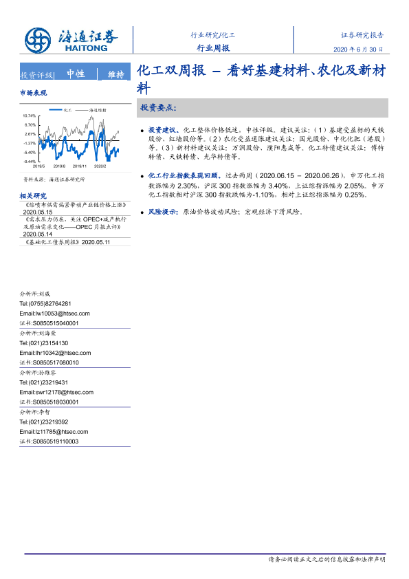 【海通证券】【20200630】20200630-海通证券-化工双周报:看好基建材料、农化及新材料-12页