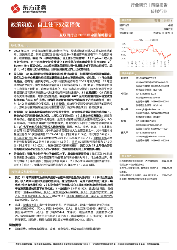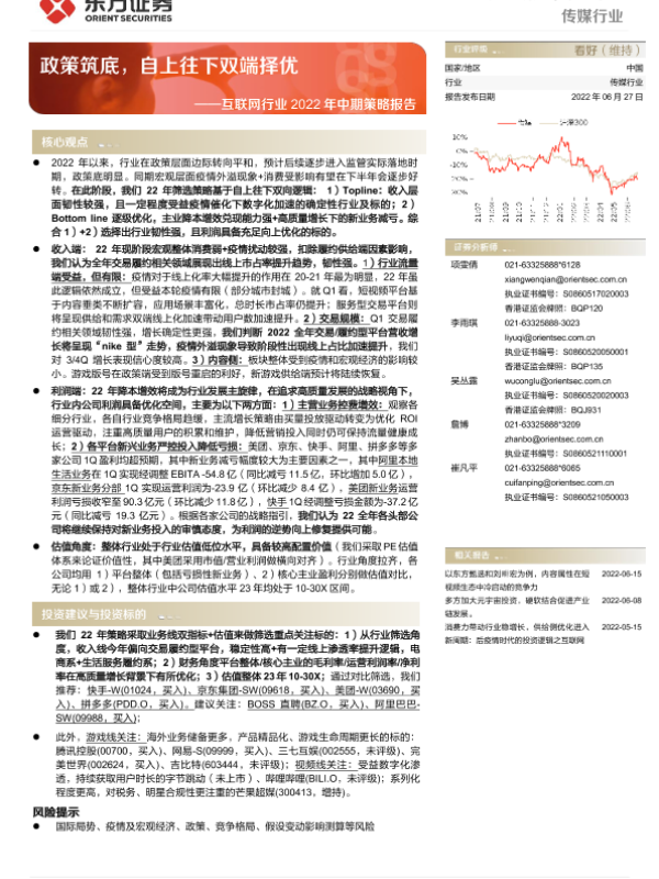 【东方证券】【20220627】互联网行业2022年中期策略报告:政策筑底,自上往下双端择优-65页