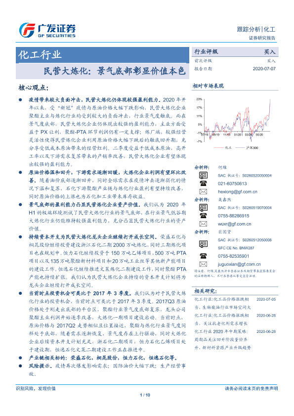 【广发证券】【20200707】民营大炼化:景气底部彰显价值本色-10页
