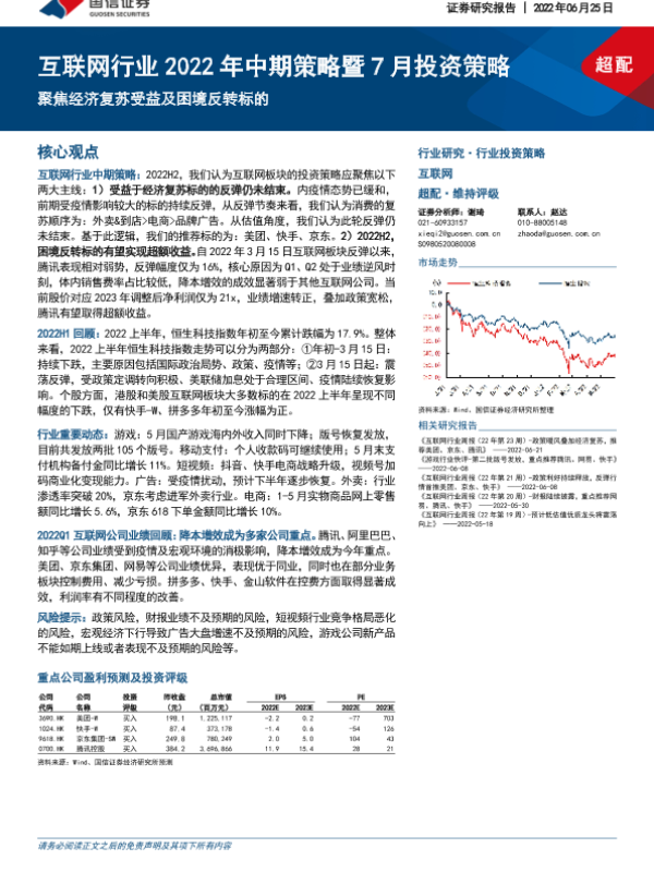 【国信证券】【20220625】互联网行业2022年中期策略暨7月投资策略:聚焦经济复苏受益及困境反转标的-32页