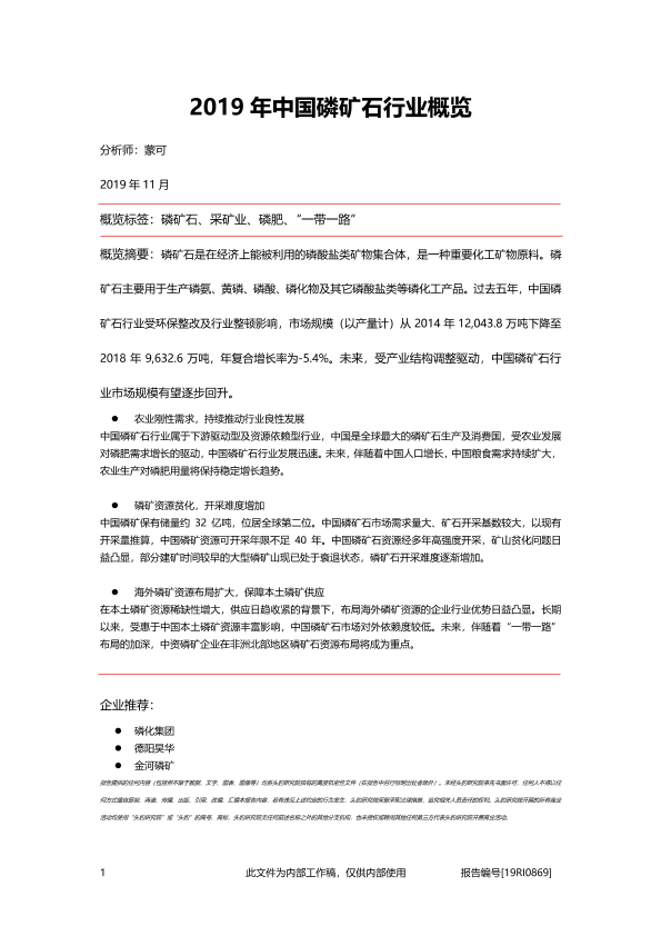 【头豹研究院】【201911】2019年中国磷矿石行业概览-27页