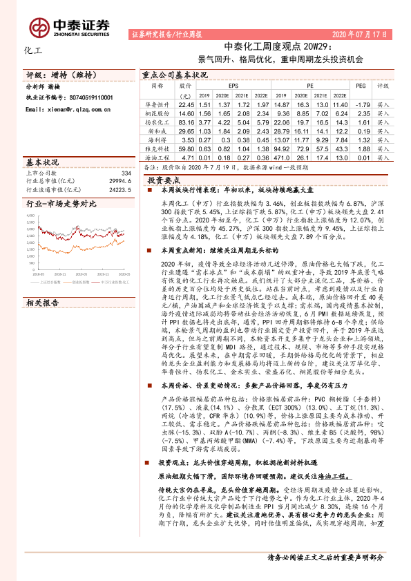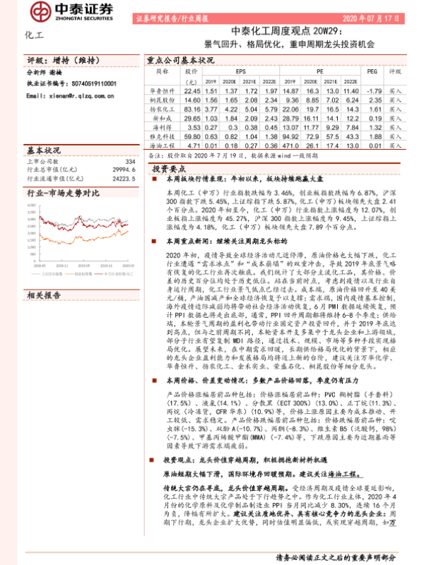【中泰证券】【20200717】中泰化工周度观点20W29:景气回升、格局优化,重申周期龙头投资机会-29页