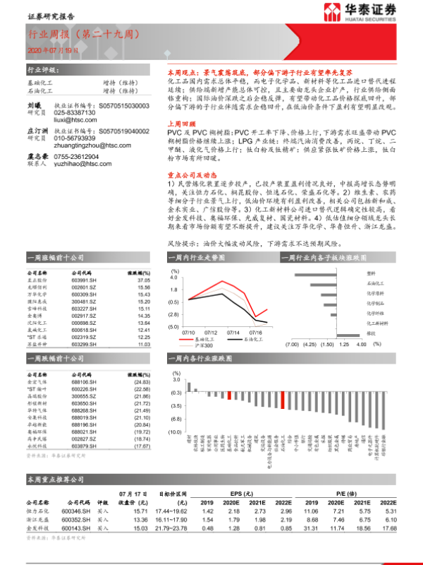 【华泰证券】【20200719】20200719-华泰证券-石油化工/基础化工行业周报(第二十九周)-14页