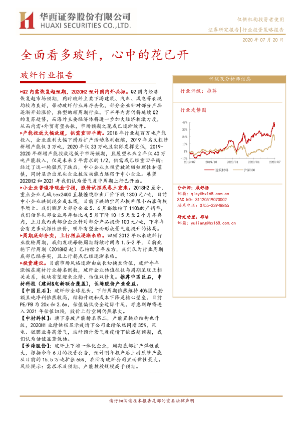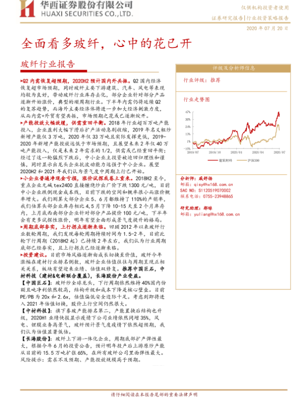 【华西证券】【20200720】20200720-华西证券-玻纤行业报告:全面看多玻纤,心中的花已开-16页