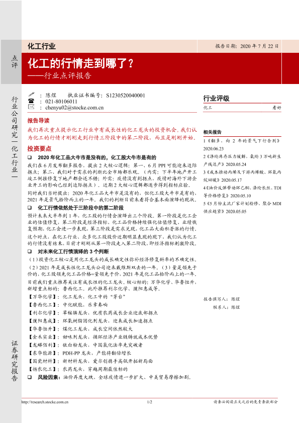 【浙商证券】【20200722】化工的行情走到哪了?-2页